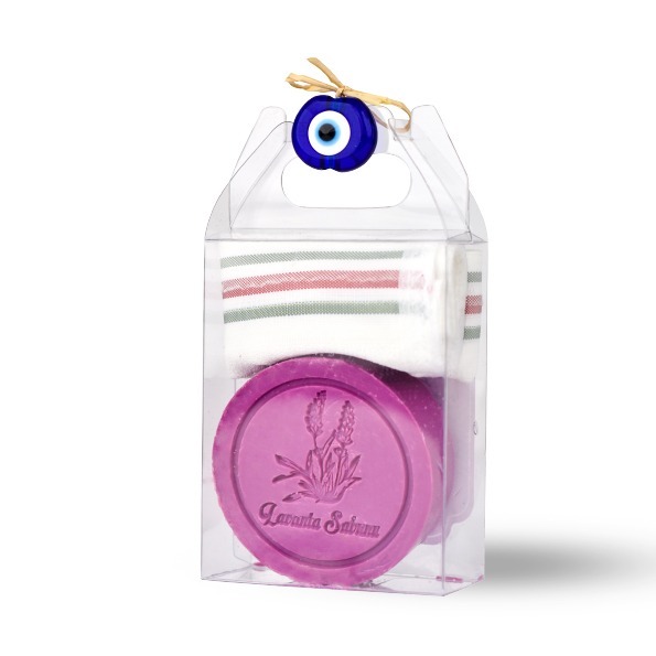 Edremit’in doğal zeytinyağı ve lavanta özü ile hazırlanmış hediyelik keseli sabun.