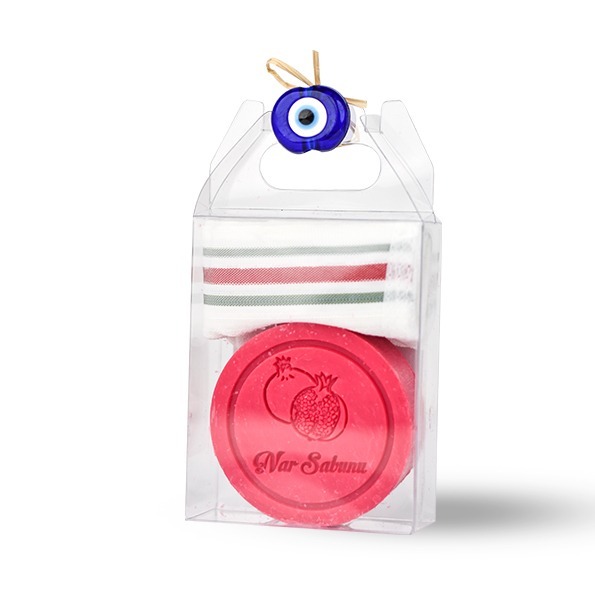 Edremit’in doğal zeytinyağı ve nar özü ile hazırlanmış hediyelik keseli sabun.