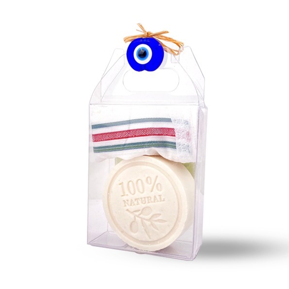 Edremit’in doğal zeytinyağı ile hazırlanmış hediyelik keseli sabun.
