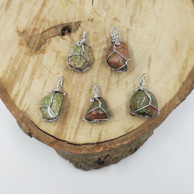 Doğal Unakit Taşı Tel Tasarım Kolye