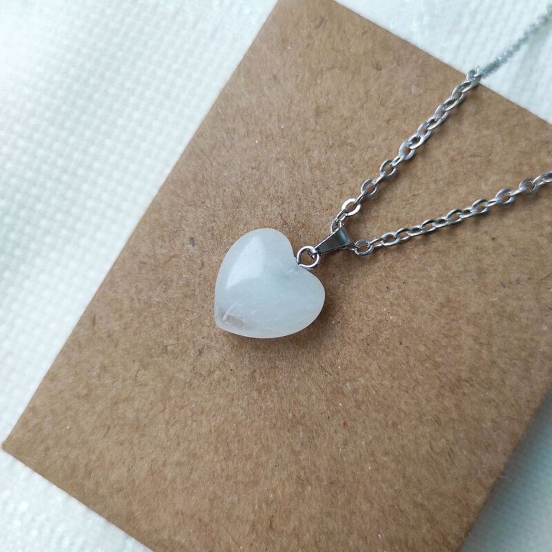Kalp Kesim Kristal Kuvars Taşı Kolye