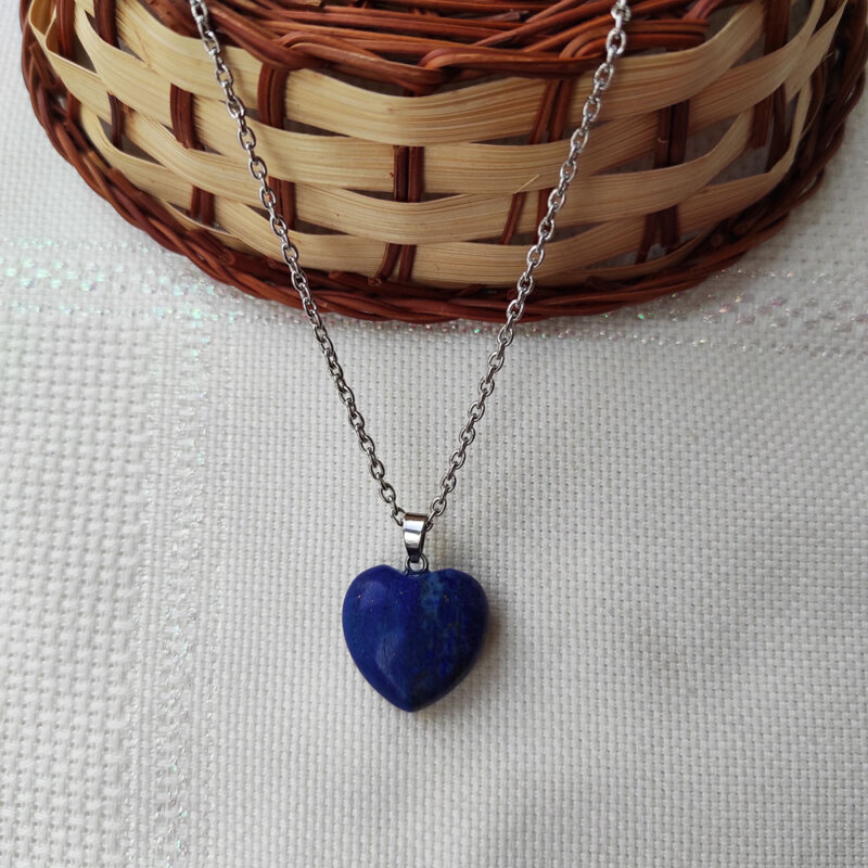 Kalp Kesim Doğal Lapis Taşı Kolye