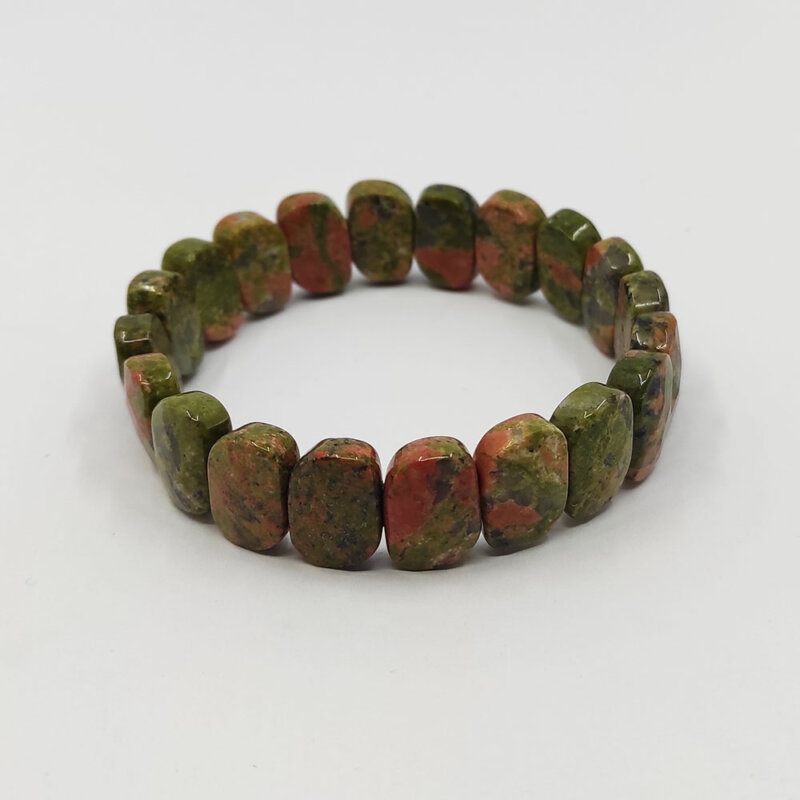 Ortalama 20 CM uzunluğa sahip elastik ipli unakit taşı doğal taş bileklik doğal faset kesim taştan tasarlanmıştır. Özel günlerinizde sevdiğinize doğal bir hediye için güzel bir seçenektir. Ürün el emeği ile yapılmaktadır. Kullanılan malzemeler dayanıklıdır. Uzun ömürlü, sağlam ve doğal malzemeler kullanılmaktadır. Misina ve iplerin birleşme yerleri aparatlarla kapatılır ve görünmez. Ürün en geç 2 gün içerisinde kargoya teslim edilmektedir. Ürün fiyatlarımızın piyasanın çok altında olmasının nedeni direk ithalatçı firma fiyat avantajı ve çok düşük kar marjı ile çalışmamızdan ötürüdür.
