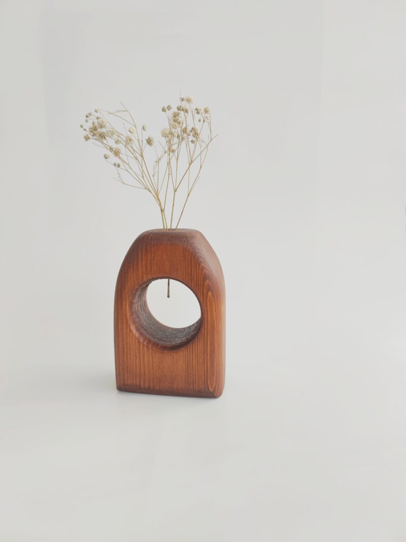 Dekoratif ahşap vazo, %100 yerli çamdan üretilmiştir. Ürün renklendirmesi su bazlı boya/vernik ile yapılmıştır. Ürünler ağacın dokusu, damar yapısı ve el üretimi olması sebebi ile farklılık gösterebilir. Siparişten 2-3 işgünü sonra kargolanır.
